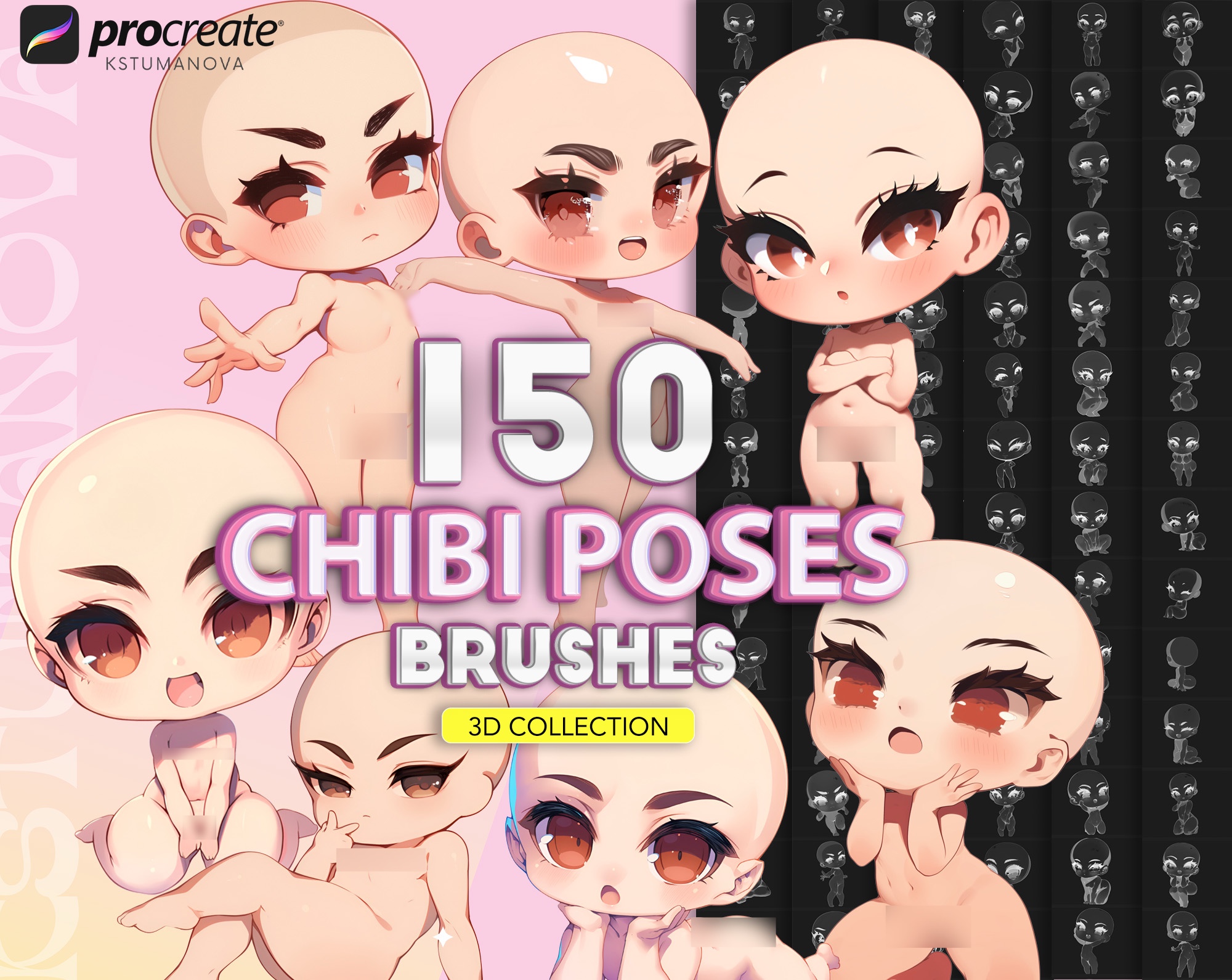 - 150 chibi poses stamps (standing, sitting, lying down, in motion, emotional, flirtatious, action)