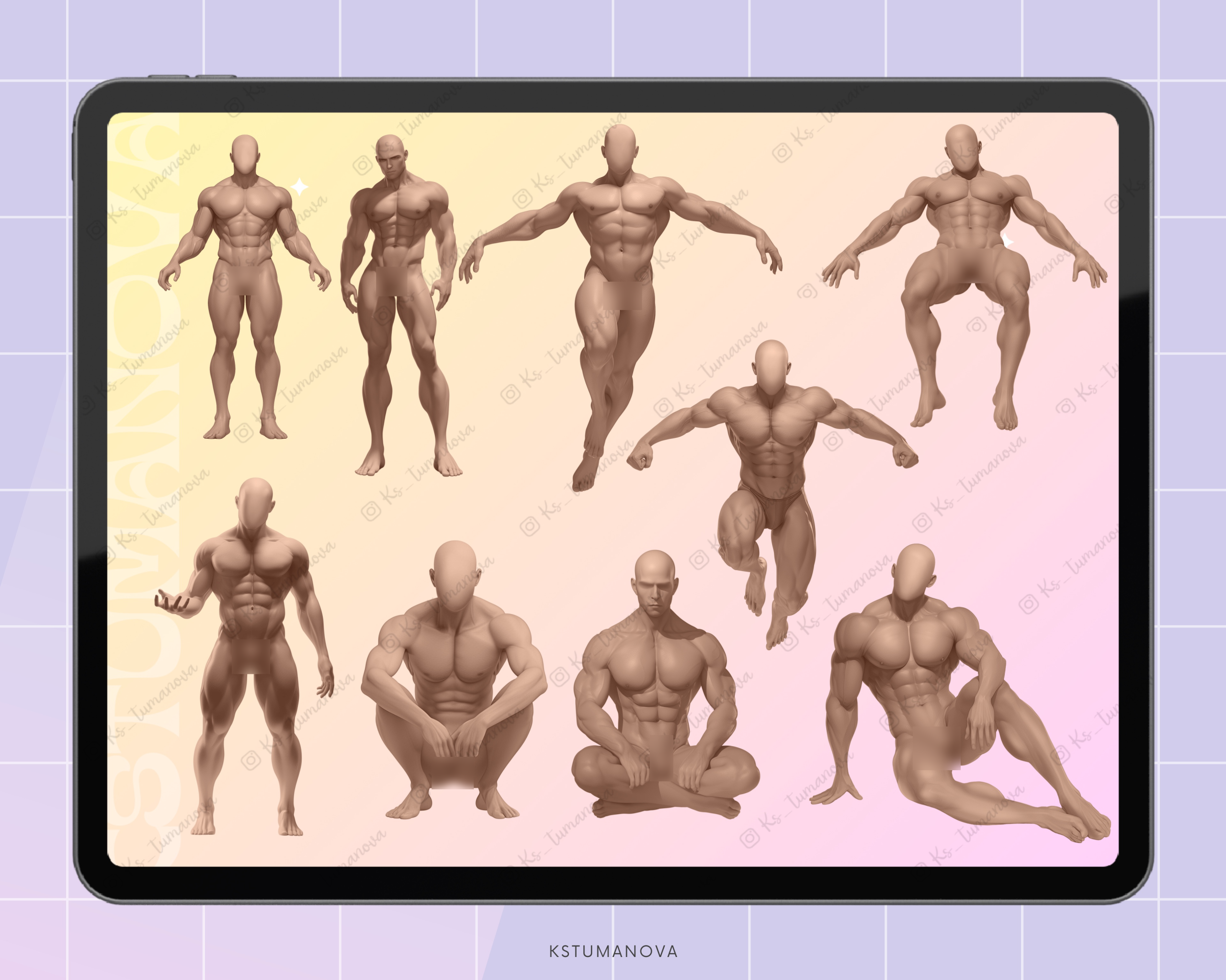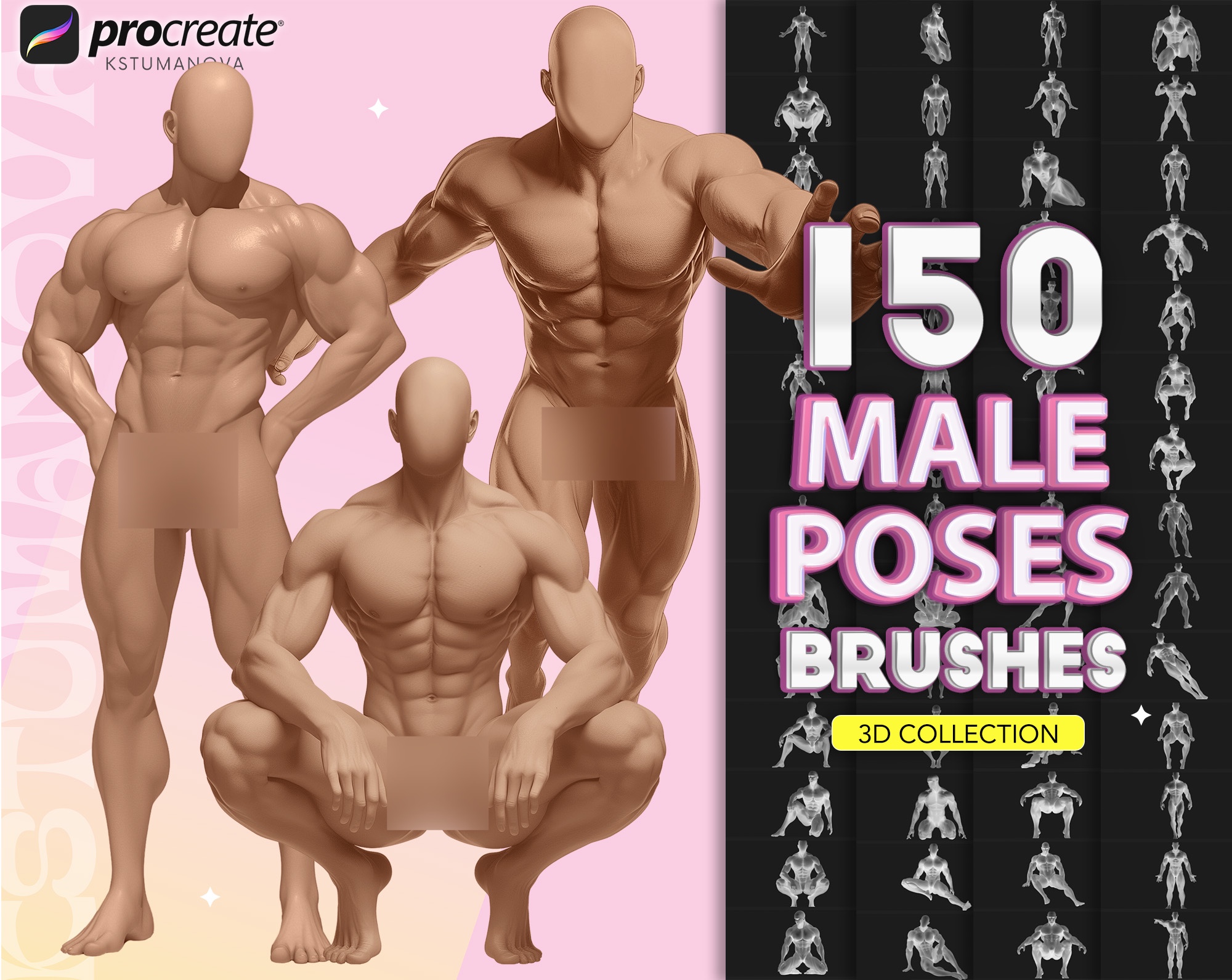 - 100+ male poses stamps (standing, moving, sitting, lying down, front/back/side view etc.)