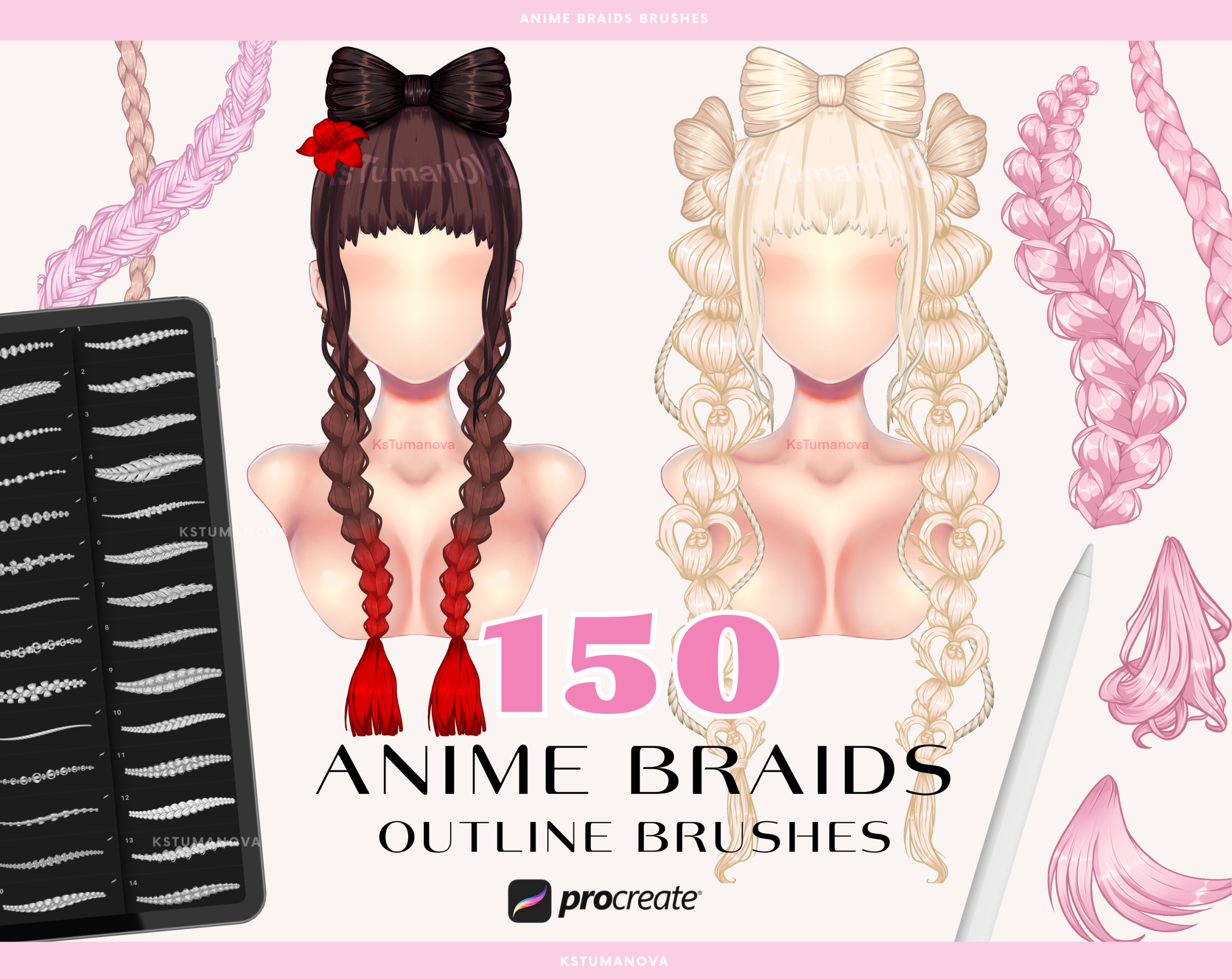 - 50 light outline braids brushes